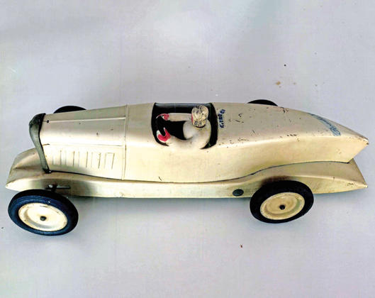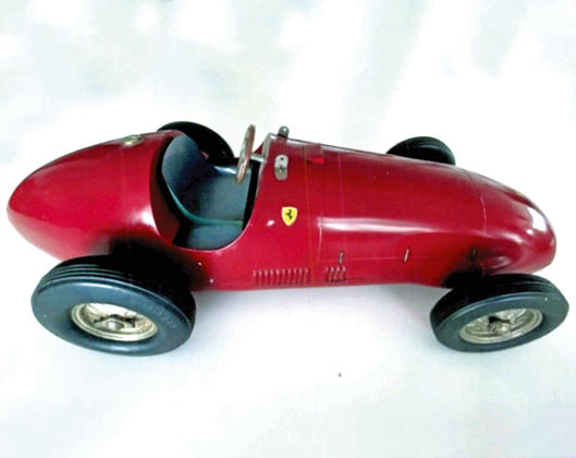 44 cm, 450 € et FERRARI Toschi Vignola, tôle rouge, 60 cm, 600 €.