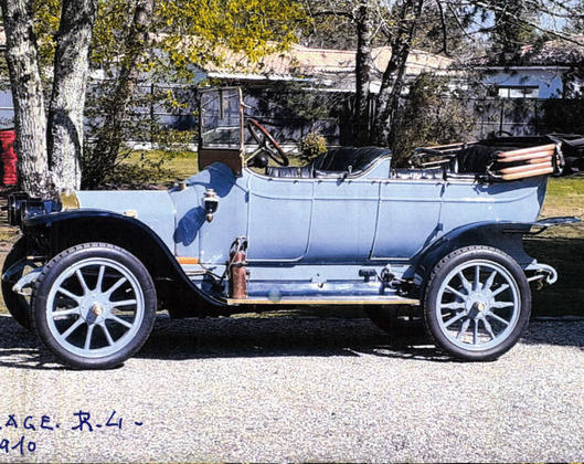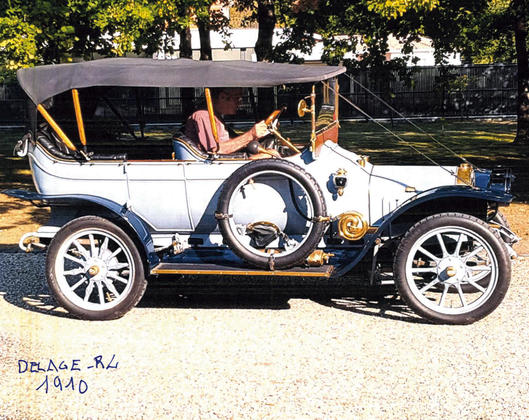 châssis 1901, torpédo 4 places, mot. DELAGE 4G1 (licence Ballot), rest. à prtir d'une auto complète et d'origine, fonctionne + accessoires, côté toile pour hiver, housse prot., béq. stockage, CGC.