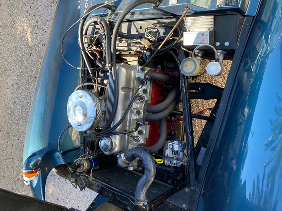 Juillet 1970, bel état de présentation, bleu Écosse, intérieur noir, nombreux travaux récents.