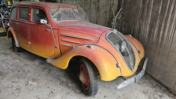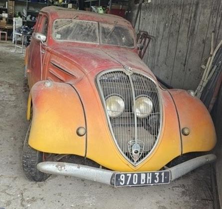 Peugeot 402 de 1937, dans la même famille depuis 1953, entièrement restaurée et roulante dans les années 1980 et conservée depuis au sec, dans un garage fermé.
