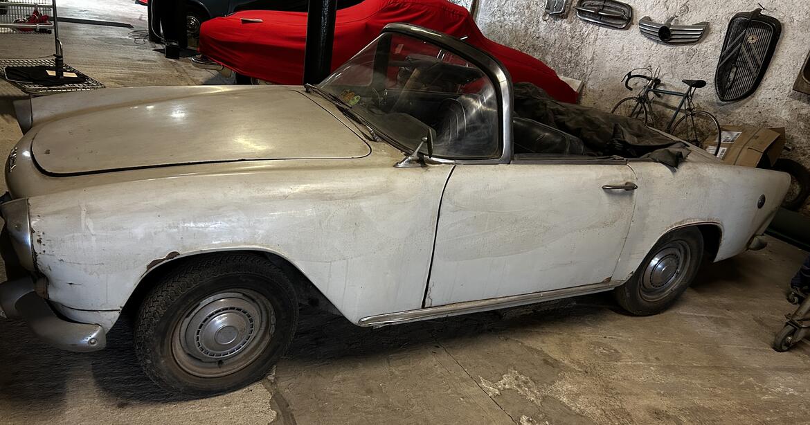 Voiture à restaurer entièrement , complète , saine (châssis ,plancher ...)moteur non bloqué.