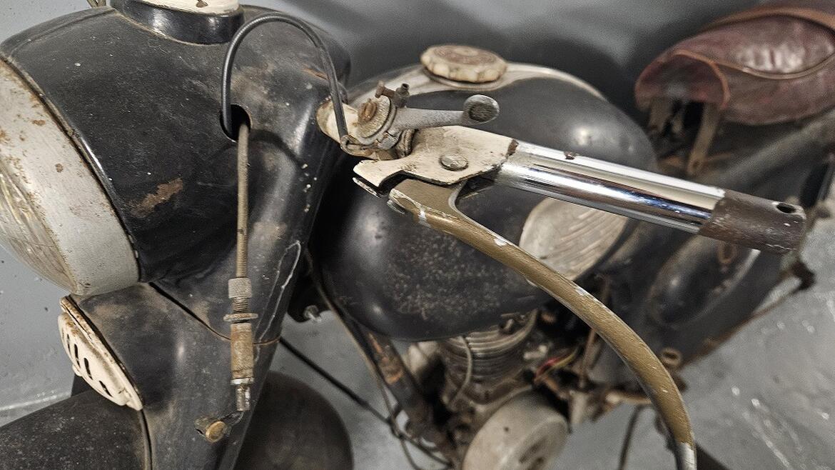 Terrot année 1957. Très saine, pas cabossée, très peu de rouille, prête pour une rénovation. Pièces manquantes faciles à trouver : Carburateur, coude d'échappement, béquille centrale, kick, sélecteur de vitesses, segments, coussinets de bielle, garniture d'embrayage.